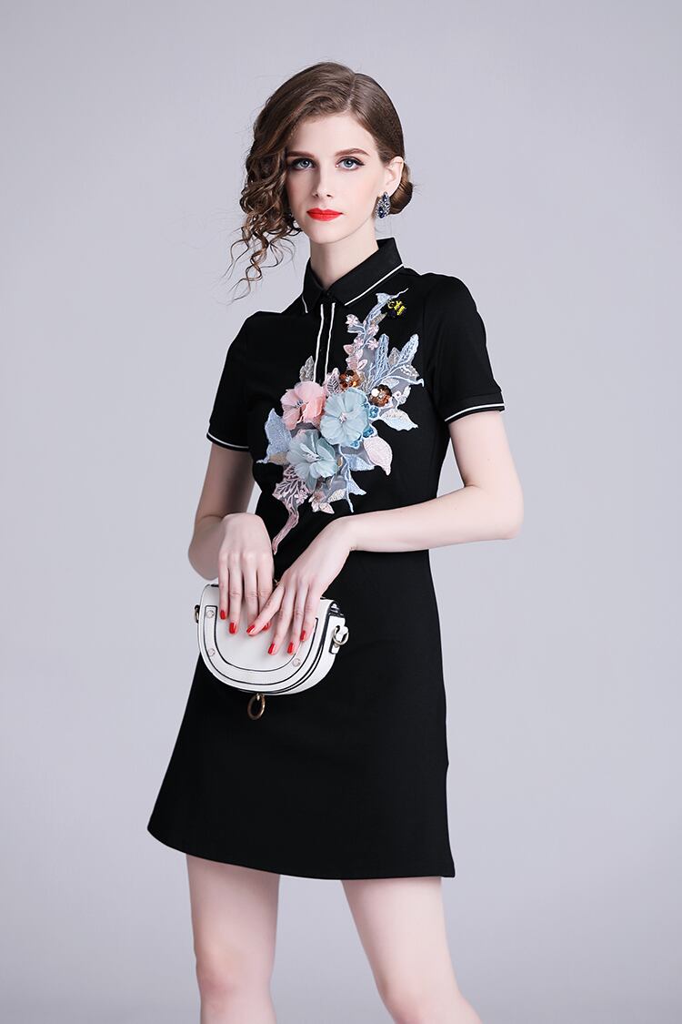 ワンピース レディース 送料無料 レトロ 立体刺繍 ワイシャツワンピ 襟付きワンピース ポロシャツ バイカラー ライン トリム ドレス dress ミニドレス ひざ上 袖あり 長袖 襟付き フレア レース 刺繍 ウエストマーク 透け感 シースルー エレガント 大人可愛い きれいめ 華やか 上品 レトロ キュート ガーリー 黒 ブラック グレー 花柄 フラワー ボタニカル オケージョン 美脚 脚長 高見え インスタ映え 春夏 秋 おしゃれ お呼ばれ お出かけ デート パーティー 二次会 フォーマル
