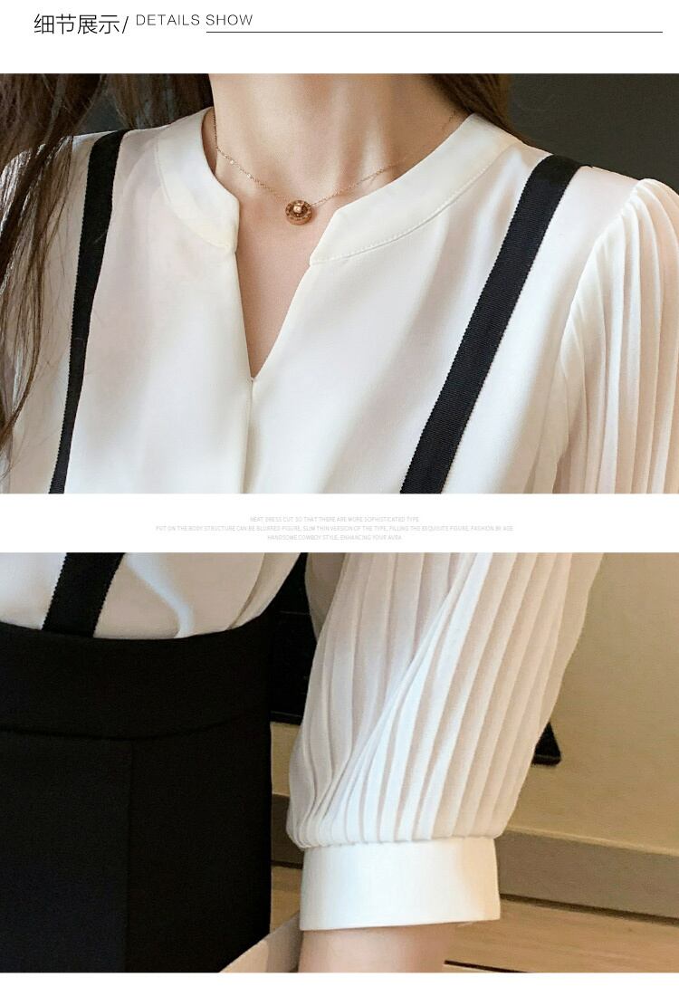 カシュクールのVネックとサイドラインが個性的なブラウスです。