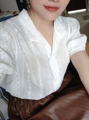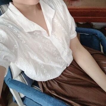 ガーリーなのに開襟でデコルテがセクシーなシャツブラウス。