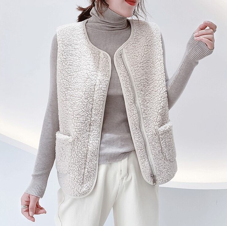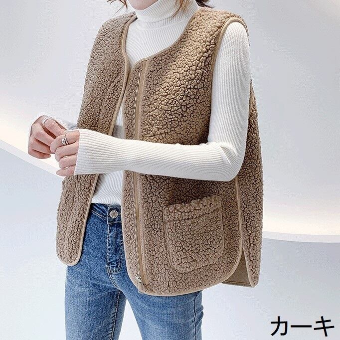 トップス アウター 上着 ベスト レディース 送料無料 袖なし ノースリーブ Uネック もこもこ ふわふわ ファスナー ポケット 前開き ウール かわいい 大人可愛い きれいめ シンプル カジュアル 上品 おしゃれ 大人女子 こなれ感 ラフ 個性的 エレガント モダン 存在感 M L XL 白 ホワイト 茶色 ブラウン ベージュ カーキ 無地 秋 冬 10代 20代 30代 40代 お出かけ 公園デビュー 女子会 お泊まり 休日 旅行 着回し 普段使い 重ね着 韓国 オルチャン スタイル あったか 暖かい