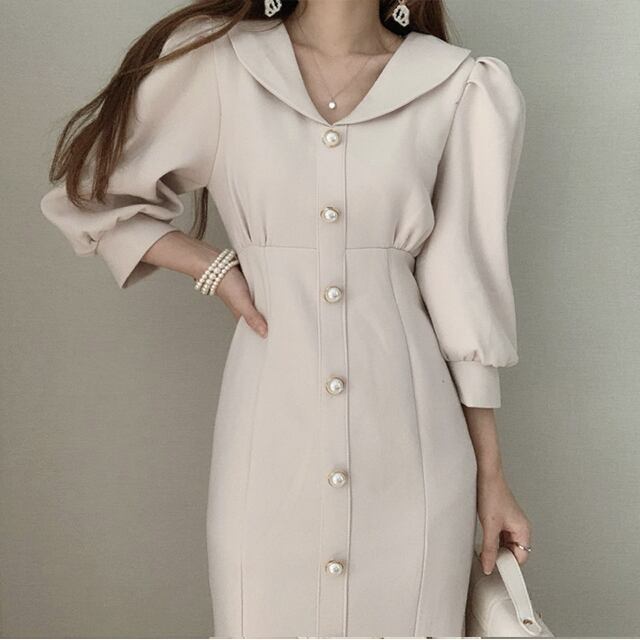 ワンピース マーメイド 膝下 ミモレ ミモレ丈 袖あり 7分袖 七分袖 ボリューム袖 Vネック マーメイド かわいい 大人可愛い きれいめ シンプル 大人 上品 おしゃれ お洒落 大人女子 こなれ感 ラブリー キュート ガーリー セクシー エレガント モダン 主役級 存在感 無地 春 秋 冬 入学式 入園式 卒業式 卒園式 謝恩会 結婚式 二次会 披露宴 10代 20代 30代 40代 レディース 着回し 普段使い 韓国系 オルチャン ファッション コーデ モテ トレンド 流行