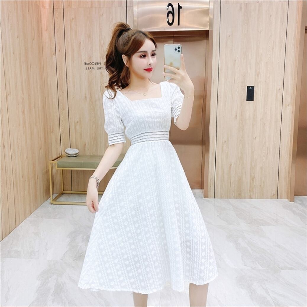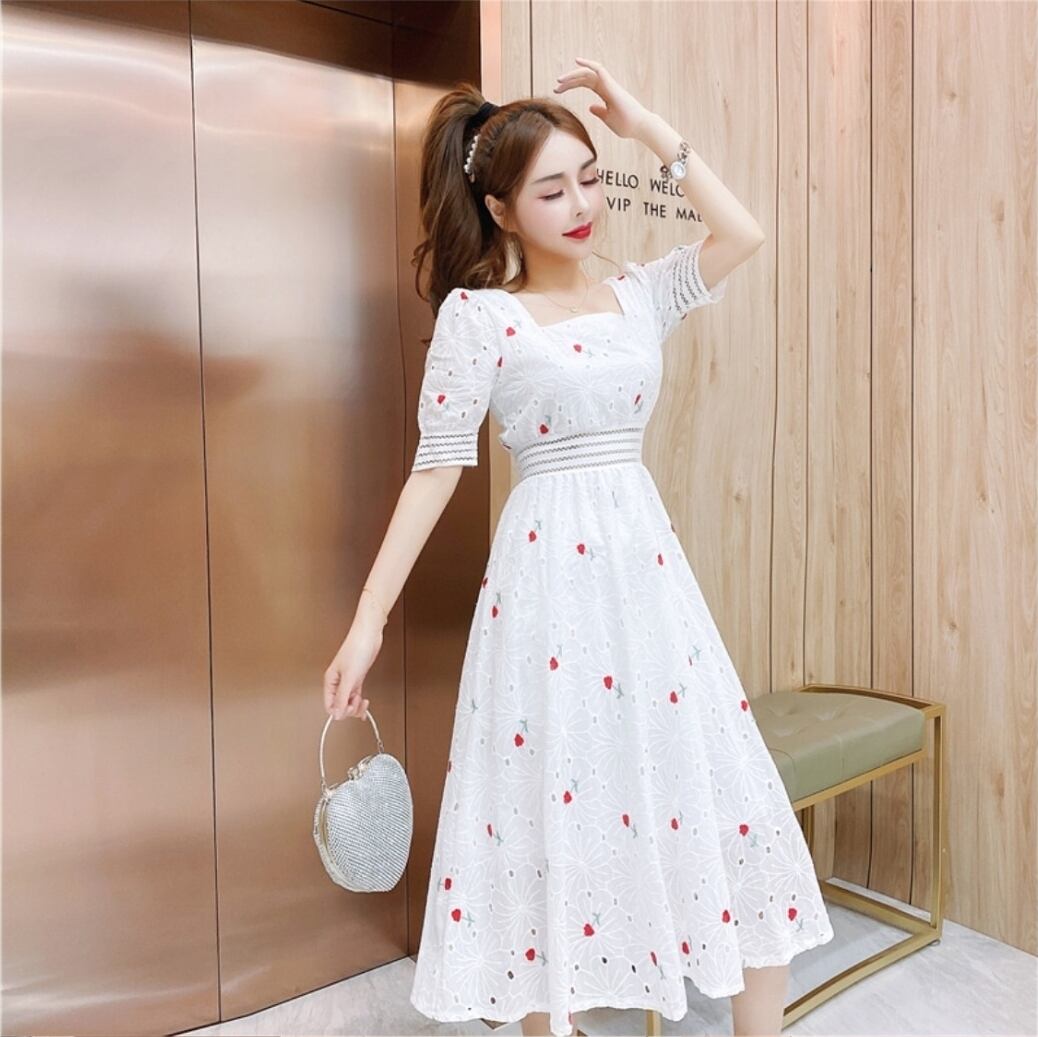 ワンピース レディース 送料無料 3色展開 フレアワンピース ロングワンピース ミモレワンピース スクエアネック 半袖 五分袖 5分袖 プルオーバー ハイウエスト ウエストマーク 体型カバー 細見え 着痩せ 脚長 スリム スタイルアップ ホワイト 花柄 フラワー 小花柄 小柄 ロング丈 ミモレ丈 フェミニン フィットアンドフレア 爽やか 涼し 清潔感 清楚 抜け感 通気性 大人可愛い 大人女子 おしゃれ お洒落 上品 エレガント ラフ モダン カジュアル ガーリー ラブリー キュート 春服 夏服 普段使い