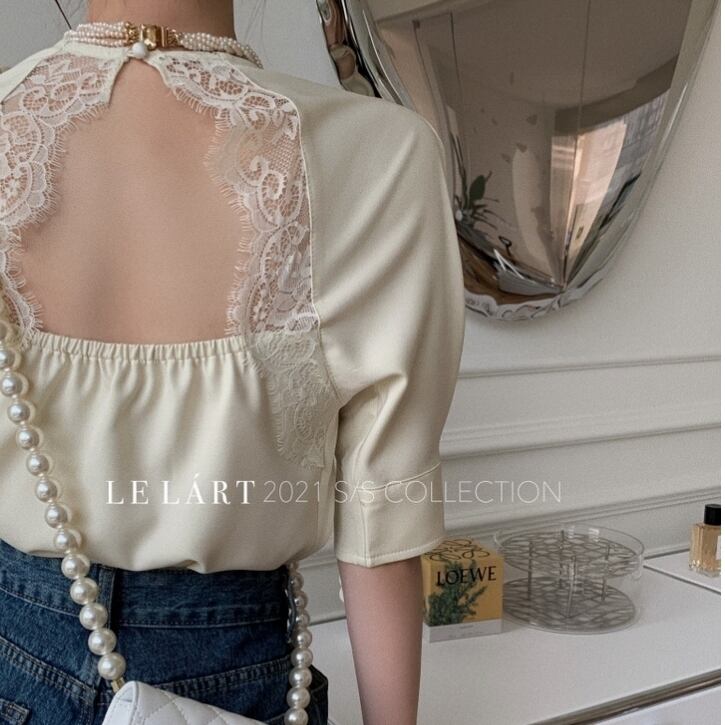 バックのレースをあしらったオープンデザインがセクシーなブラウスです。