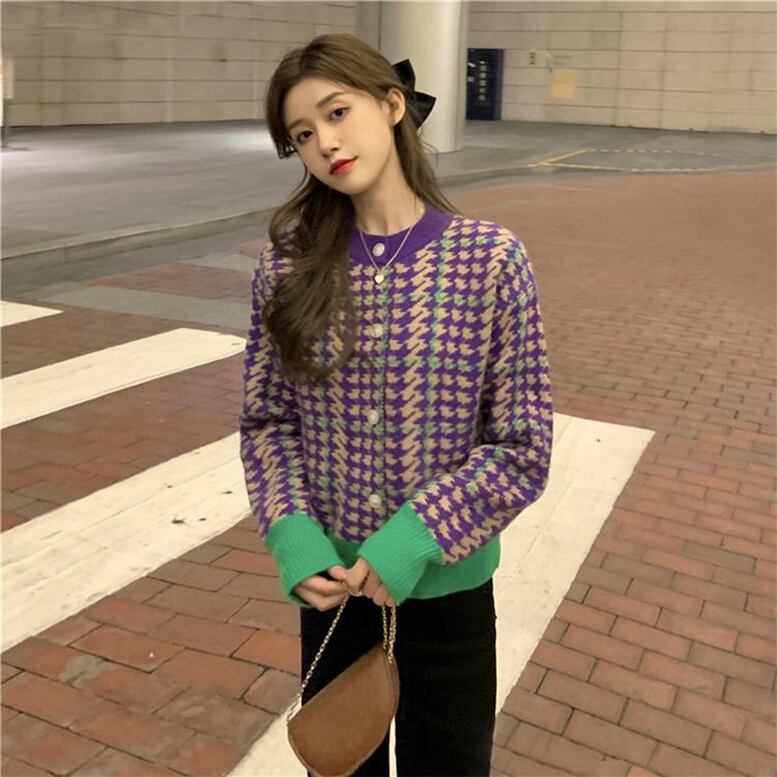 千鳥柄カーディガン レディース 送料無料 クルーネックMIXカラー千鳥チェックカーディガン 千鳥柄チェックニットカーディガン トップス セーター カーディガン 長袖 クルーネック 前開き ニット 大人可愛い きれいめ 上品 レトロ キュート ガーリー エレガント ゆったり ニュアンスカラー チェック柄 ボヘミアン 重ね着 体型カバー 高見え インスタ映え 春 秋冬 大人 かわいい おしゃれ 普段使い デイリー お呼ばれ お出かけ デート オフィス 通勤 通学 旅行 トレンド