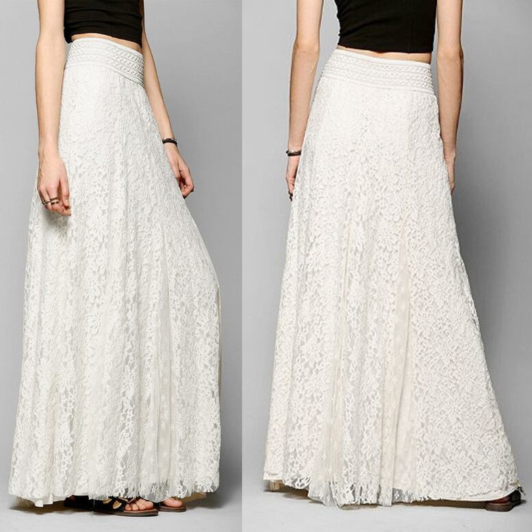オトナっぽい印象の総レース仕立てのフェミニンなマキシスカート