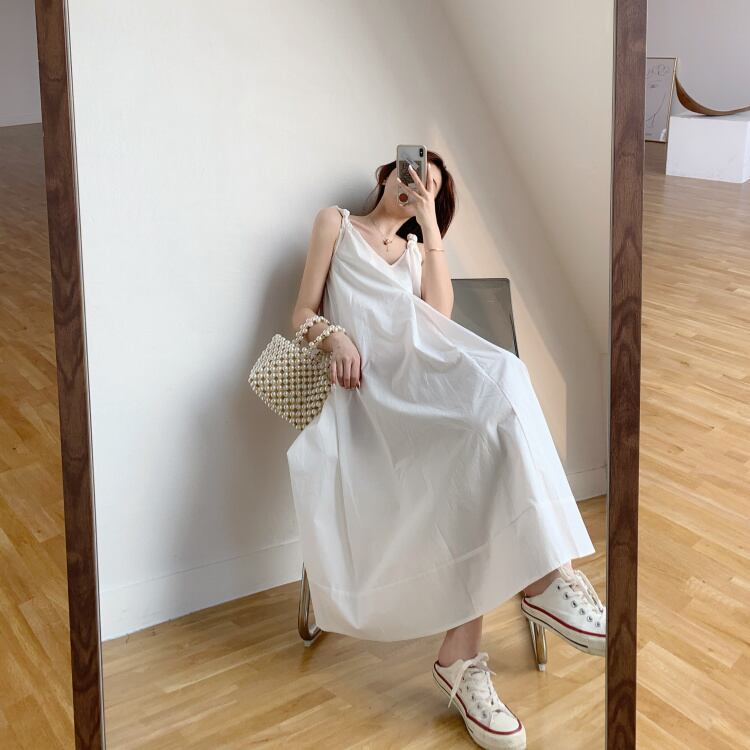 ノット付き肩紐でラフな大人の魅力が溢れるキャミワンピースです。