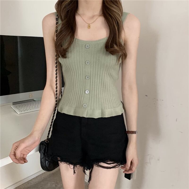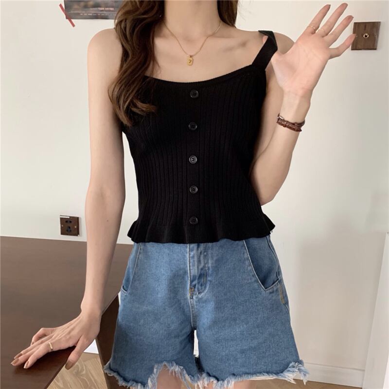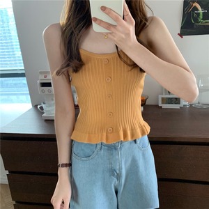 トップス レディース 送料無料 裾フリルキャミソール カラバリ 7色 イエロー グリーン ピンク ブラック パープル ホワイト ブルー カラバリ豊富 ワンサイズ フリーサイズ ボタンデザインニットキャミソール フロントボタン キャミソール リブ カジュアル 無地 裾フリル インナー お出かけ 休日 日常 デイリー 通勤 通学 学生 デート 10代 20代 30代 運動 ランニング ヨガ 女子会 ママ友ランチ 重ね着 春 夏 秋 可愛い