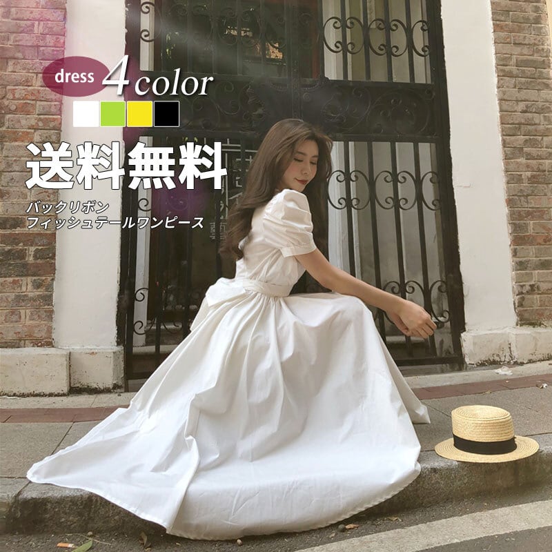 バックリボンワンピース レディース 送料無料 4色 ワンピース ドレス フレア ブラックドレス クルーネック ワンピース パフスリーブワンピース バックコンシャス バックリボンワンピース ひざ下 ミモレ ロング丈 半袖 パフスリーブ スクエアネック リボン バックリボン バックコンシャス ハイウエスト エレガント 大人可愛い きれいめ 華やか 上品 レトロ クラシック ガーリー 黒 ブラック オケージョン 高見え 格上げ 春夏 秋冬 お呼ばれ お出かけ デート パーティー 二次会 フォーマル トレンド