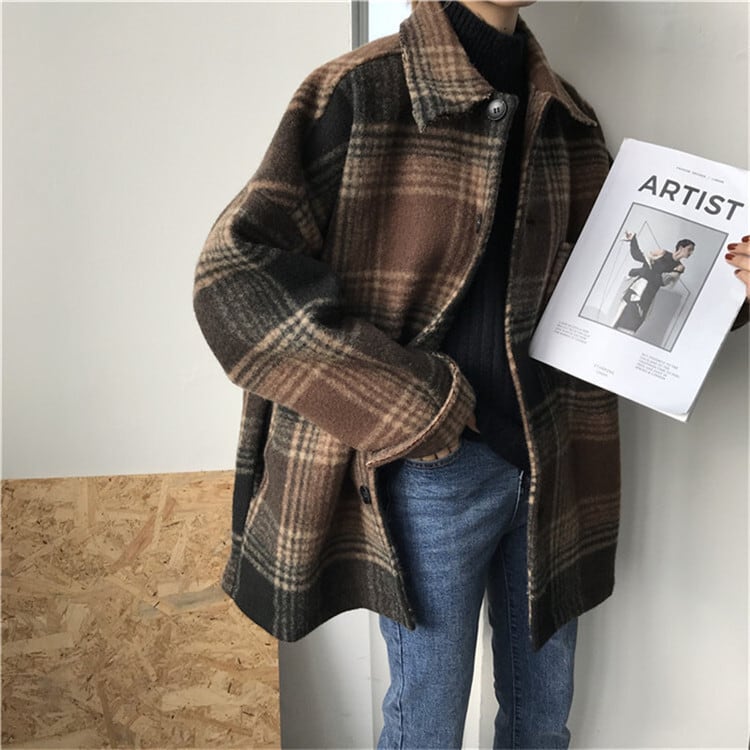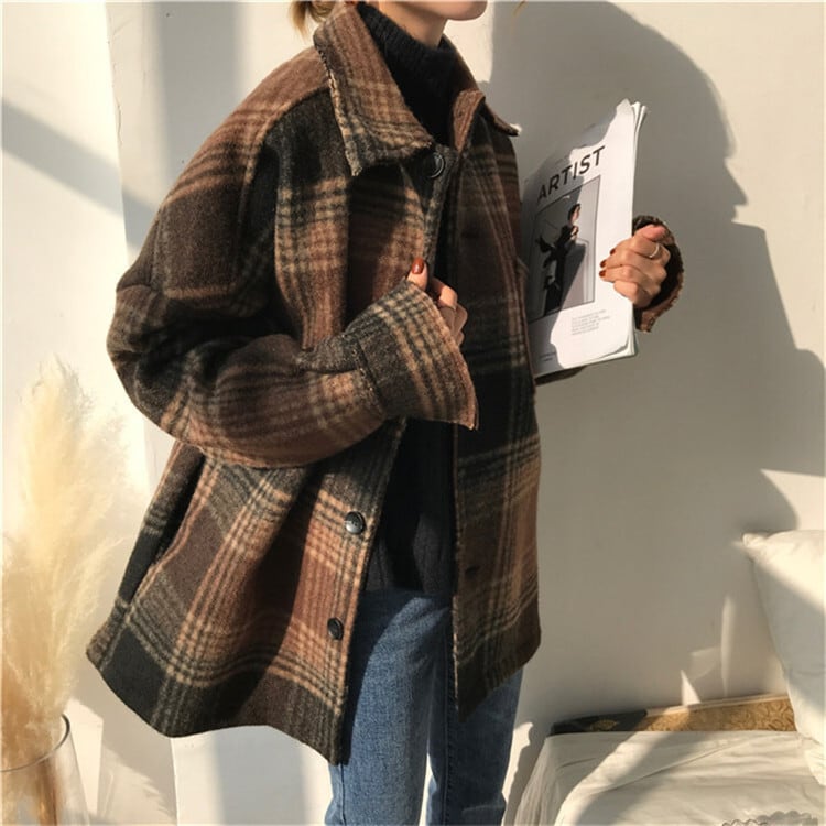 レトロな質感のチェックとオーバーサイズでマニッシュな雰囲気に。