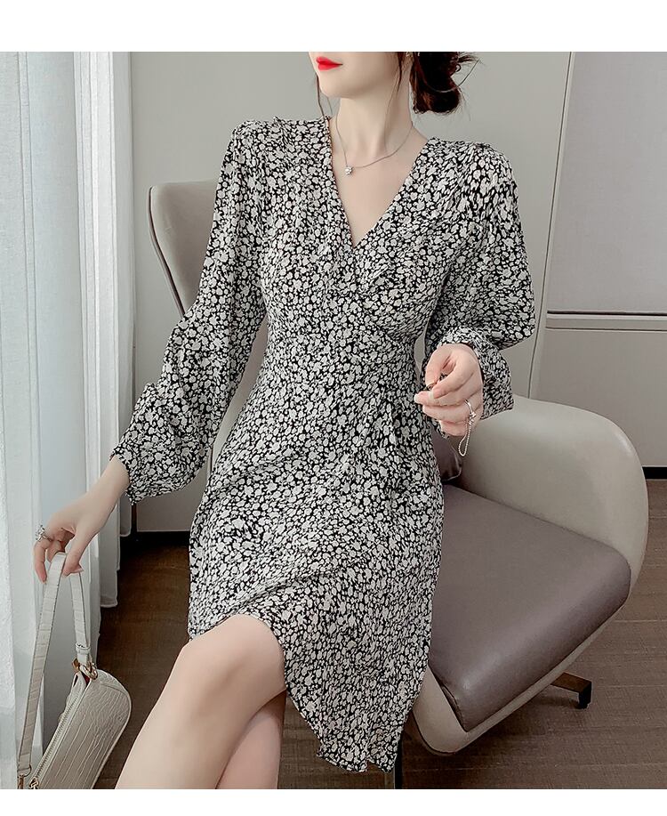 ワンピース ワンピース 長袖 Vネック 送料無料 2色 シャーリング 巻きスカート ラップ ミディアム丈 フレア フローラル パフスリーブ ひざ丈 大人可愛い きれいめ 大人 上品 おしゃれ お洒落 大人可愛い 大人女子 ラブリー キュート ガーリー セクシー エレガント 主役級 存在感 緑 グリーン 小花柄 フラワー 夏 春 レディース パーティー イベント リゾート 旅行 海 プール 着回し 普段使い 重ね着 韓国 韓国系 オルチャン ファッション コーデ スタイル モテ トレンド 流行