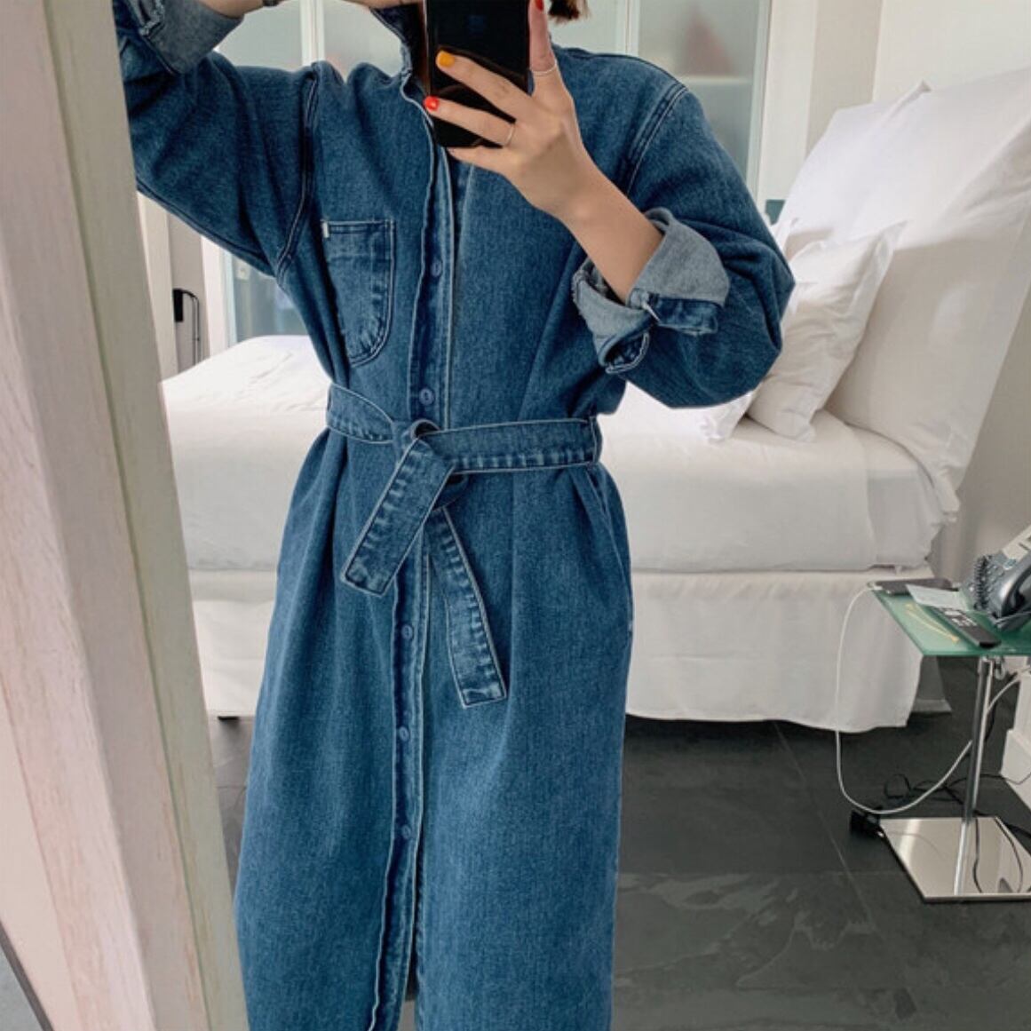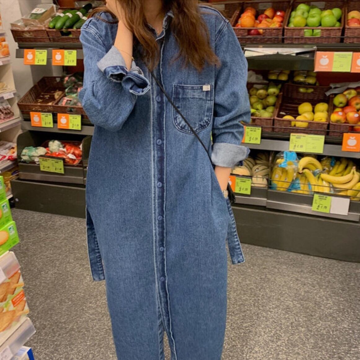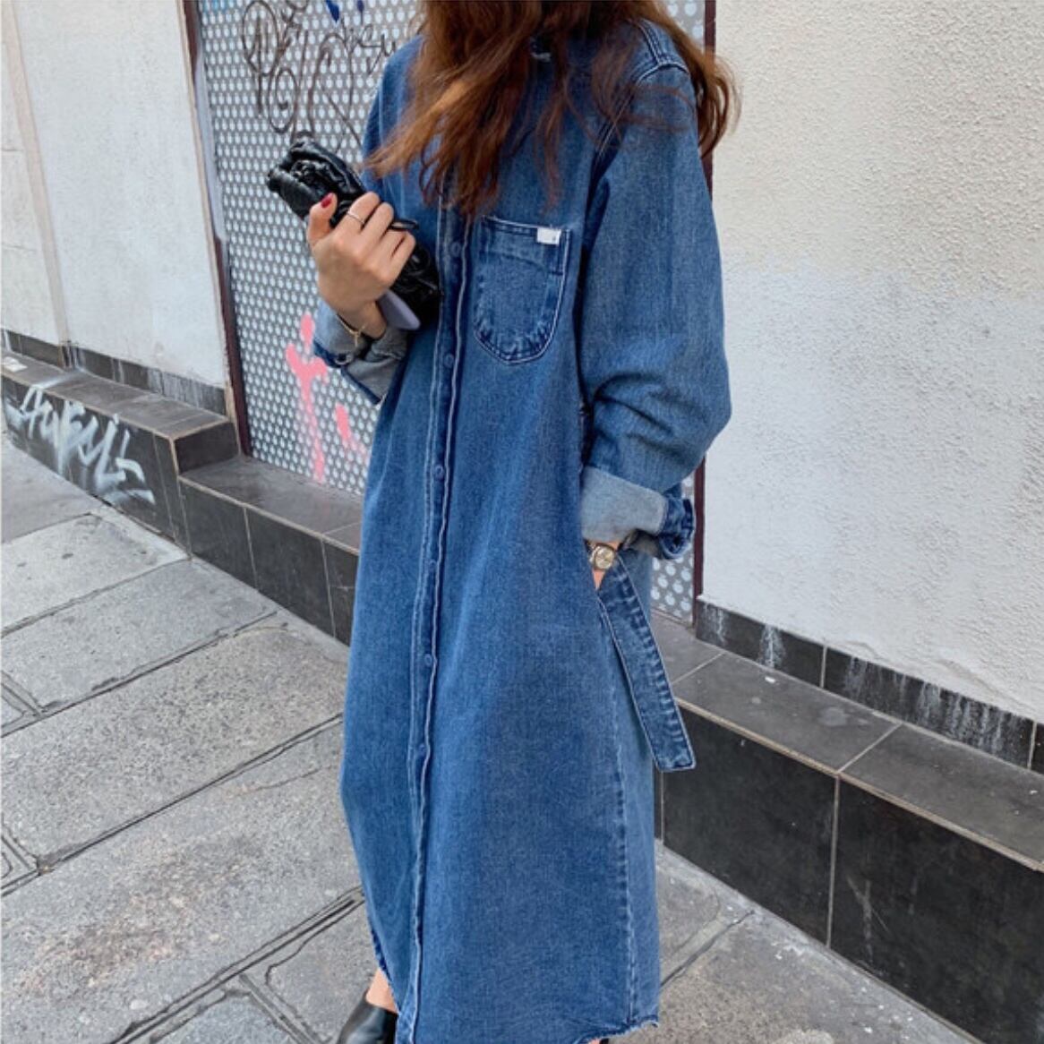 ワンピース レディース 送料無料 ロング丈 デニム シャツ シャツワンピース デニムシャツ ミモレ丈 ロングワンピース デニム生地 前開き 襟付き スタンダードカラー ポケット付き 大きいサイズ 大きめ オーバーサイズ ビッグシルエット ゆったり ゆる カジュアル ラフ Iライン 長袖 かわいい 大人可愛い きれいめ シンプル おしゃれ お洒落 こなれ感 ルーズ 抜け感 S M L 無地 春 春服 秋 秋服 10代 20代 普段使い 着回し コーデ ファッション 休日 デート お出かけ 青 ブルー 膝下丈