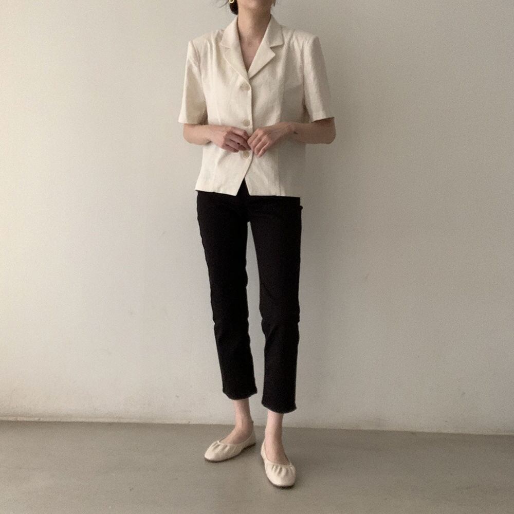 薄手なので涼しく着られて、羽織にもぴったりの短め丈。