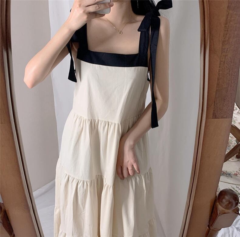 肩紐がリボンになったフェミニンなティアードワンピースです。