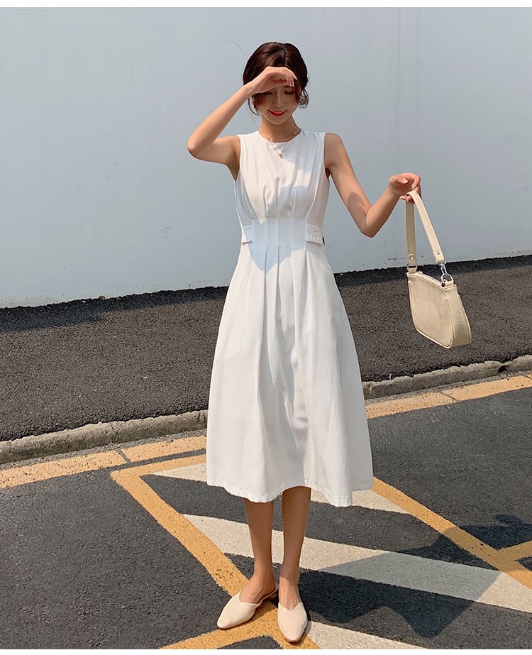 ワンピース ノースリーブ Aライン きれいめ カジュアル 膝丈 ひざ丈 袖なし フレア かわいい 大人可愛い 大人 上品 おしゃれ お洒落 大人可愛い 大人女子 ラブリー キュート ガーリー クール モード系 エレガント モダン 白 ホワイト 黒 ブラック 無地 10代 20代 30代 40代 50代 レディース オフィス ビジネス OL 通勤 学生 通学 デート お出かけ 女子会 イベント リゾート 旅行 海 プール パーティー 着回し 普段使い 韓国 韓国系 オルチャン ファッション コーデ モテ