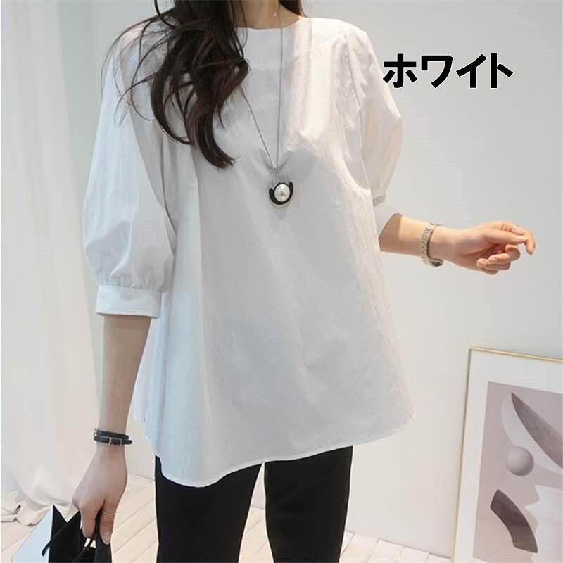 トップス レディース 送料無料 2色 カットソー シャツ プルオーバー ビッグシルエット クルーネック スウェット パフスリーブ 七分袖 単色 ホワイト 白色 ブラック 黒色 カジュアル シンプル 可愛い おしゃれ お洒落 こなれ感 抜け感 爽やか 清潔感 涼し 清楚 きれいめ ラフ ゆったり ゆる 楽ちん 大きめ ワイド S M L 春服 夏服 10代 20代 30代 40代 おでかけ デート モテ 通学 学生 休日 散歩 着回し 普段使い 韓国 オルチャン ファッション コーデ 新作 2021