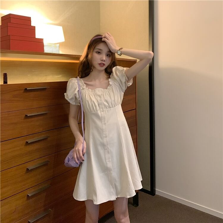 ワンピース レディース 送料無料 2色 ミニワンピース 2WAY スクエアネック シャーリング オフショルダー トラペーズネック 前開き ボタン フレアワンピース 半袖 ハイウエスト ショート丈 ロマンチック ガーリー キュート こなれ感 スタイル 小顔見せ 着痩せ 体形カバー インスタ トレンド きれいめ エレガント カジュアル フリル ギャザー シャーリング ボリューム フレア 大人かわいい 上品 ドール お人形 ふんわり パフスリーブ デート お出かけ ミニワンピース ミニドレス 襟付き