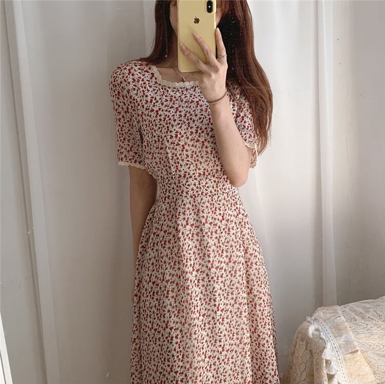 ワンピース レディース 送料無料 フレアワンピース ロングワンピース ミモレワンピース ロング丈 ミモレ丈 スクエアネック 半袖 五分袖 5分袖 プルオーバー ハイウエスト 体型カバー 二の腕カバー 脚長 細見え 華奢見え ホワイト レッド 花柄 小花柄 大人女子 抜け感 こなれ感 おしゃれ お洒落 フェミニン ガーリー キュート 大人可愛い かわいい 動きやすい 爽やか 涼し 清潔感 楽ちん 存在感 鮮やか 華やか 通気性 春服 夏服 おでかけ デート 普段使い 着回し 重ね着 流行 新作 2021