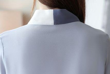 ベーシックなデザインのブラウスに、バイカラーボウタイがアクセントになっています。
