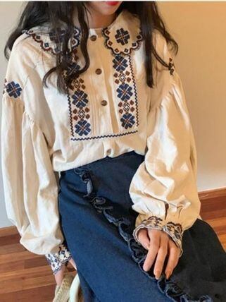 レディース ブラウス 花柄 刺繍 トレンド フラワートップス 袖あり 長袖 パフスリーブ ボヘミアン シフォン かわいい 大人可愛い きれいめ 大人 上品 おしゃれ レトロ 大人可愛い 大人女子 ラブリー キュート ガーリー 個性的 エレガント 主役級 存在感 緑 グリーン オレンジ 春 夏 柄 小花柄 フラワー 10代 20代 30代 レディース 学生 通学 デート お出かけ 休日 着回し 普段使い 重ね着 韓国 韓国系 オルチャン ファッション コーデ モテ トレンド 流行