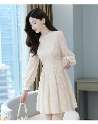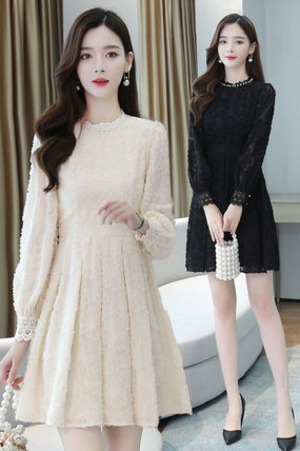 ワンピース レディース 送料無料 2色 クルーネック パフスリーブ ミディアム丈 パール ドットフラワー ミモレ丈 レース 花柄 袖あり 長袖 セミフレア ウエストマーク ハイウエスト 大人可愛い きれいめ カジュアル 上品 おしゃれ レトロ 大人女子 こなれ感 ラフ ラブリー キュート ガーリー エレガント S M L XL 黒 ブラック ドット柄 水玉 春 秋 冬 10代 20代 デート お出かけ 女子会 休日 リゾート 旅行 海 プール 普段使い 韓国 楽ちん 体系カバー 美脚 脚長 インスタ映え