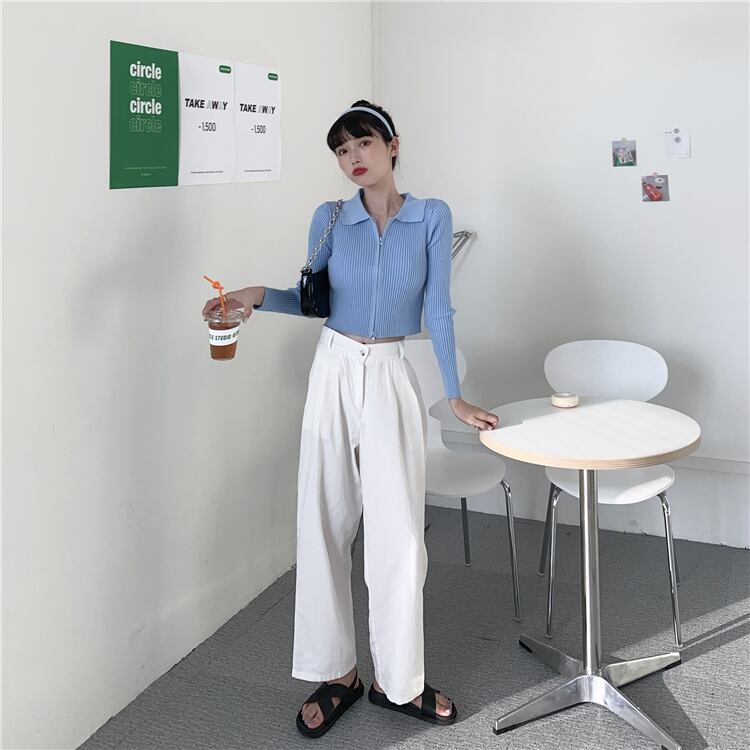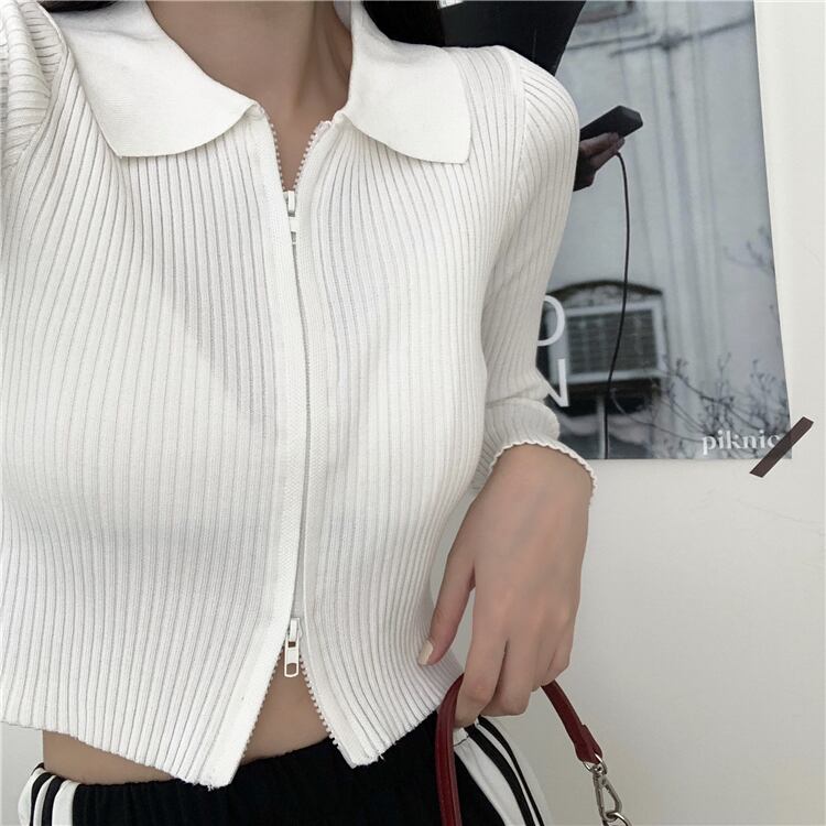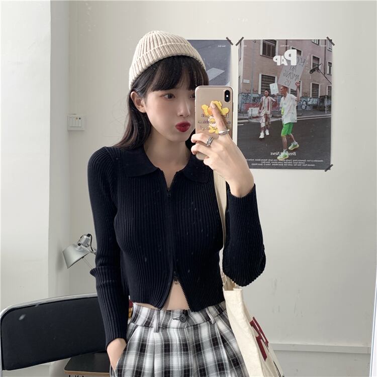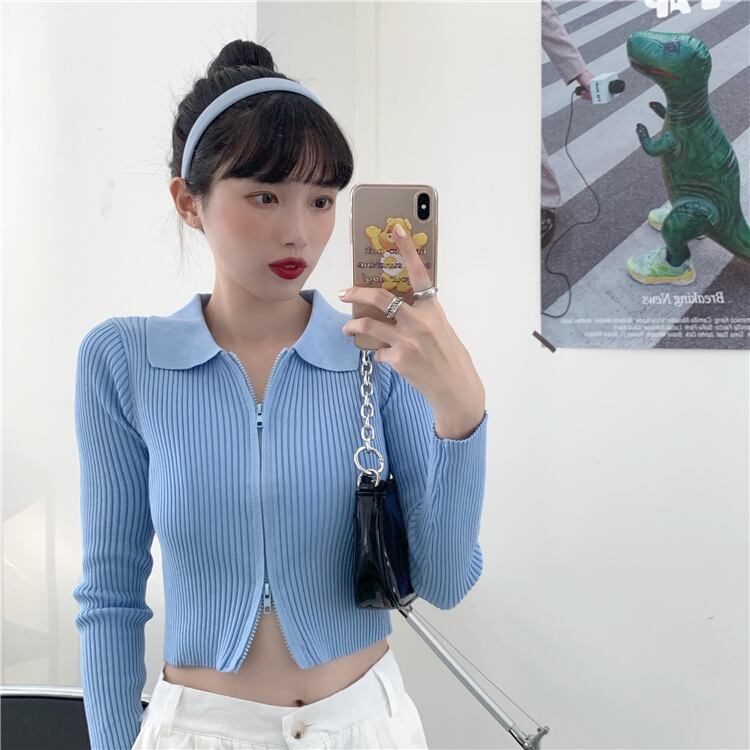 トップス レディース 送料無料 長袖ショート丈カーディガン カラバリ 4色 ブラック ホワイト ライトブルー ピンク フリーサイズ ワンサイズ リブデザイン襟付き へそ出し ファスナーカーディガン 無地カーディガン ファスナーカーディガン リブ 襟付き カラフル ニットカーディガン ボタンカーディガン スタイリッシュカーディガン クロップド丈 ショート丈 カジュアル シンプル デイリー 日常 フロント ジッパー 通勤 通学 学生 休日 デート ランチ ディナー 韓国 韓国ファッション オルチャン