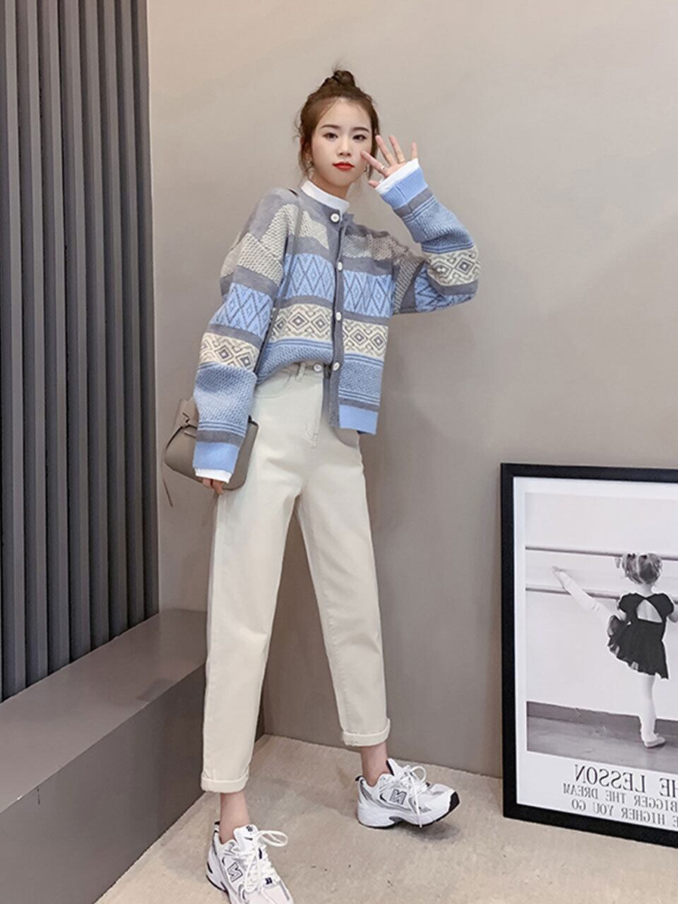 トップス レディース 送料無料 長袖カーディガン カラバリ 2色 グレー ブラウン ワンサイズ フリーサイズ ラウンドネックノルディック柄カーディガン ラウンドネックカーディガン ノルディック柄カーディガン バイカラー ショート丈 フロントボタンカーディガン 秋 冬 あったか 20代 30代 40代 アウター 羽織 ゆったり楽ちん 通勤 通学 学生 休日 お出かけ 公園デビュー ママ友ランチ 長袖 フロントボタン 韓国 韓国ファッション オルチャン