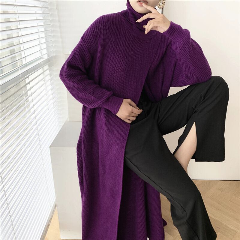 トップス レディース 送料無料 4色展開 ニット セーター ロング丈 ミモレ丈 ハイネック タートルネック 長袖 ロングスリーブ プルオーバー スリット 体型カバー 二の腕カバー 脚長 細見え 華奢見え スタイルアップ ブラック ブラウン アイボリー パープル 大人女子 抜け感 こなれ感 おしゃれ お洒落 フェミニン スタイリッシュ モダン 大人可愛い かわいい 動きやすい 暖か あったか 清潔感 楽ちん 存在感 通気性 春服 秋服 冬服 おでかけ デート 普段使い 着回し 重ね着 流行 新作 2021