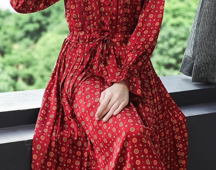 長袖 ワンピース プリーツ エレガント Aライン フレア プリーツ シフォン ウエストマーク ウエストリボン かわいい 大人可愛い きれいめ 大人 上品 おしゃれ お洒落 レトロ 大人可愛い 大人女子 ラブリー キュート ガーリー 主役級 存在感 赤 レッド 柄 春 夏 秋 謝恩会 結婚式 二次会 披露宴 学生 通学 デート お出かけ 女子会 着回し 普段使い 重ね着 韓国 韓国系 オルチャン ファッション コーデ モテ インスタ映え 10代 20代 30代 40代