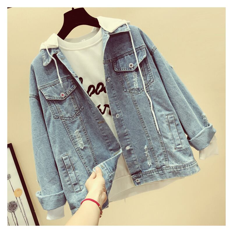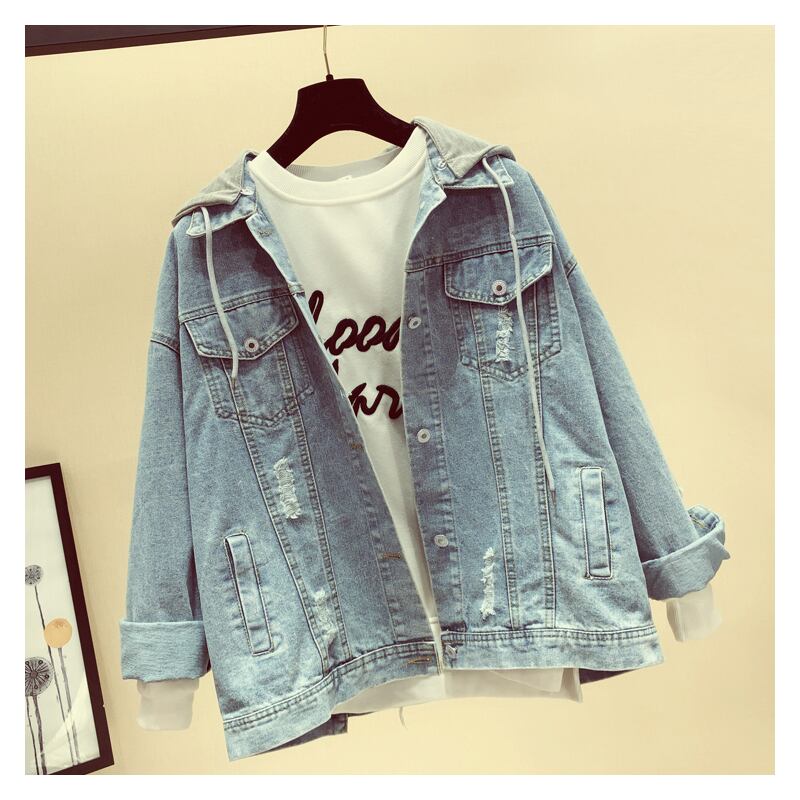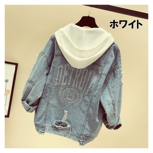 デニムジャケット レディース 送料無料 3色 デニム フード付き バックプリント レイヤード風 デニム生地 前開き ビッグシルエット ダメージ クラッシュ ゆったり ゆる カジュアル ラフ Iライン 長袖 かわいい 大人可愛い きれいめ シンプル おしゃれ お洒落 こなれ感 ルーズ 抜け感 S M L 無地 春 春服 秋 秋服 10代 20代 普段使い 着回し コーデ ファッション 休日 デート お出かけ