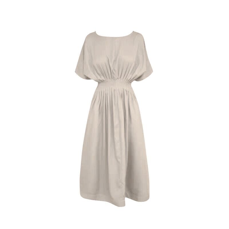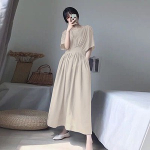 ワンピース レディース 送料無料 2色展開 フレアワンピース ロングワンピース マキシワンピース ボートネック ラウンドネック 半袖 五分袖 5分袖 プルオーバー ハイウエスト ウエストマーク 体型カバー 脚長 細見え 華奢見え スタイルアップ ロング丈 マキシ丈 アイボリー ブルー フェミニン きれいめ 上品 エレガント 大人女子 大人可愛い こなれ感 おしゃれ お洒落 カジュアル ラフ シンプル シック モダン 春服 夏服 秋服 おでかけ デート 普段使い 重ね着 着回し 10代 20代 30代