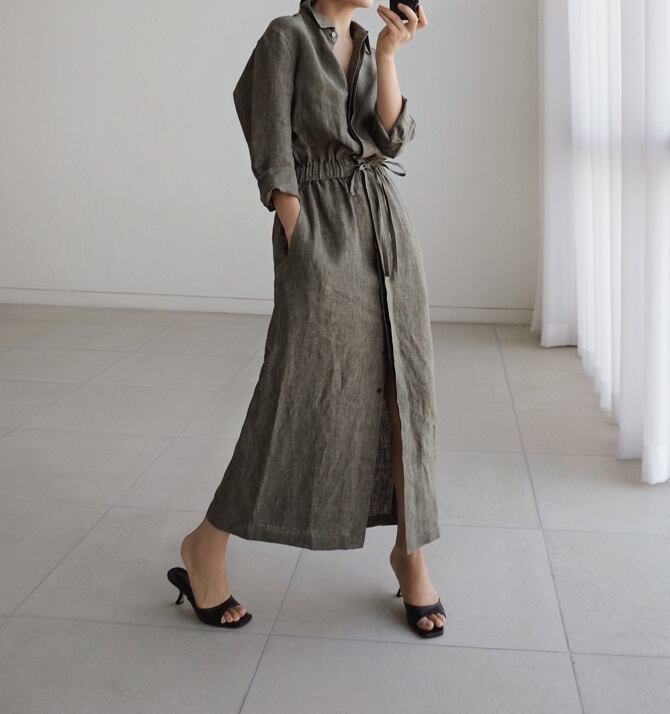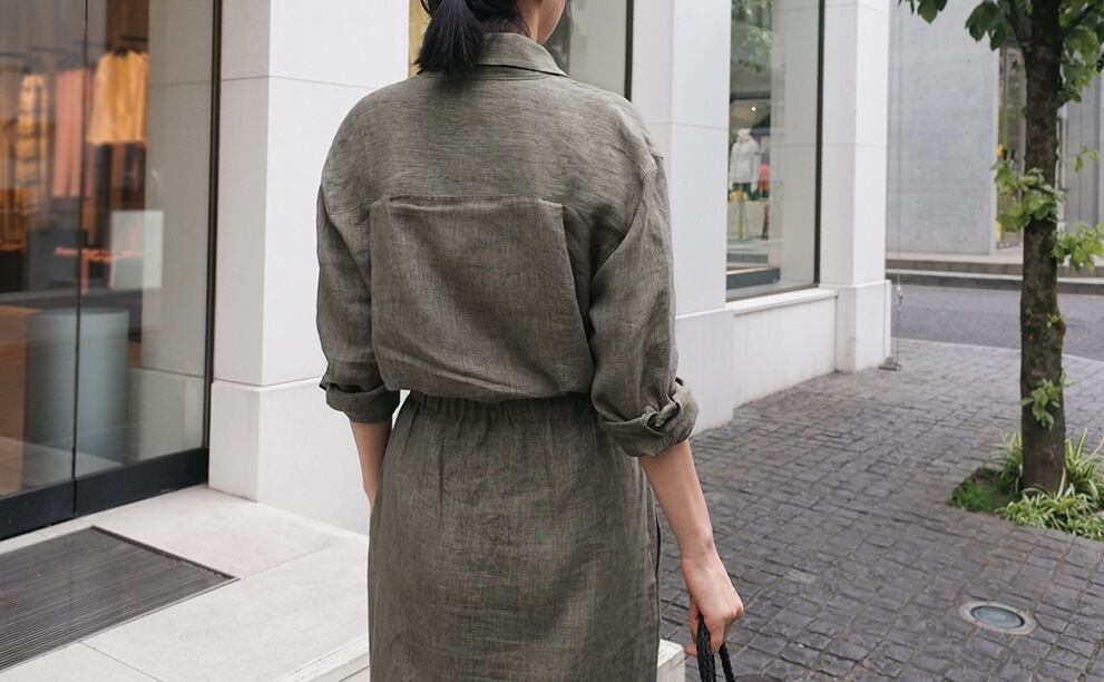 大人カジュアルなシャツワンピース。