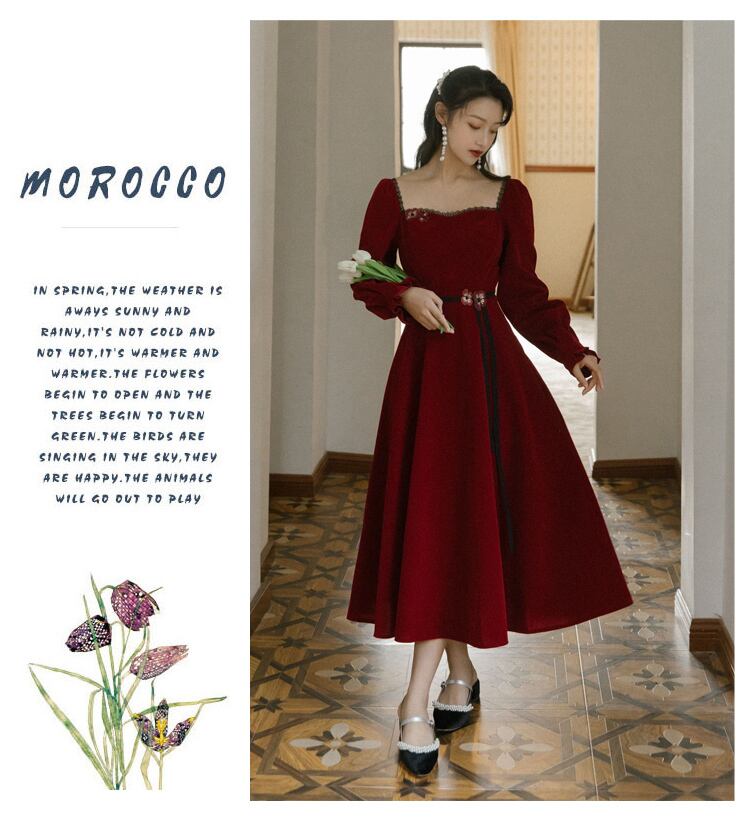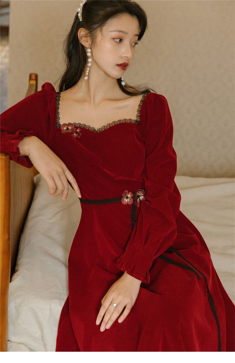 ワンピース レディース 送料無料 長袖 刺繍 ハートシェイプドネック ベロア ベルベット スクエアネックドレス レース パフスリーブ シャーリング ドレス アワーグラスドレス ロング丈 ミモレ丈 アワーグラスライン スイートハートネック ハートシェイプドネック パワーショルダー ランタンスリーブ バルーンスリーブ ボリューム袖 スリット 黒 ブラック アプリコット ベージュ 無地 大人女子 上品 エレガント セクシー きれいめ こなれ感 抜け感 冠婚葬祭 二次会 パーティー おでかけ