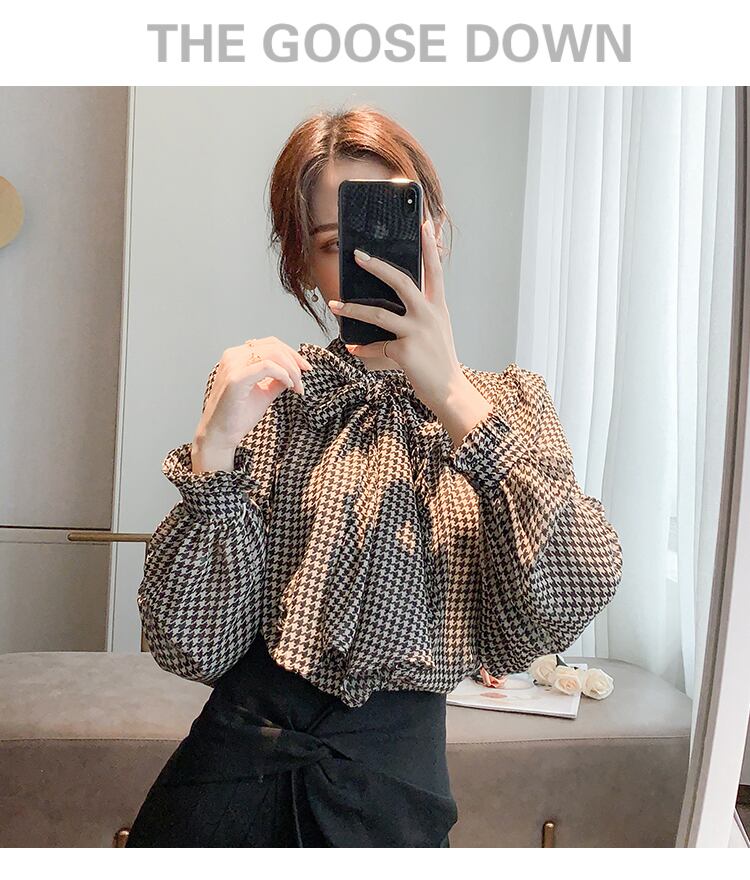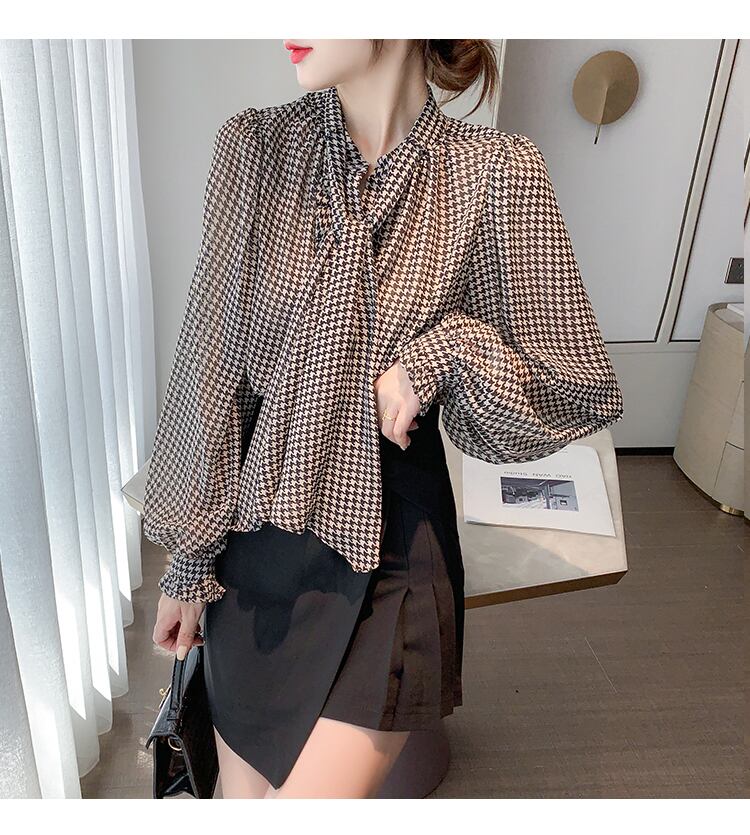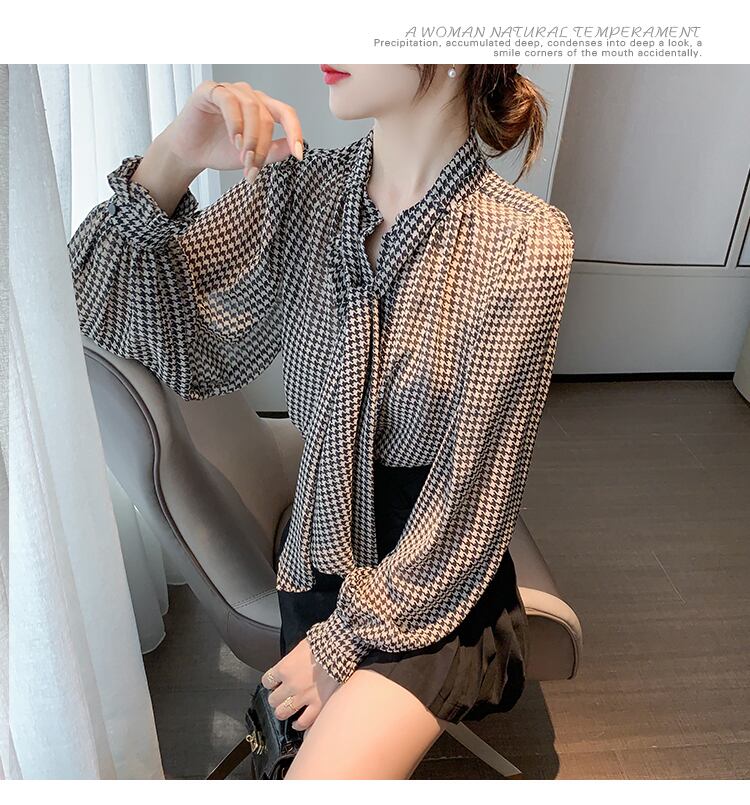 トップス レディース 送料無料 シャツ ブラウス 長袖 襟付き スタンドカラー リボンタイ ボウタイ 千鳥格子 パフスリーブ ゆったり ゆる 透け感 抜け感 こなれ感 シック クール カッコイイ かっこいい 個性的 華やか 派手 無地 春 春服 春物 秋 秋服 秋物 10代 20代 普段使い 重ね着 着回し おしゃれ お洒落 ラフ カジュアル 前開き シルバー 銀 ブラック 黒 グレー 灰色 涼し 通気性 薄手 ポリエステル シフォン シフォンシャツ ワイド 存在感 モード系 エキゾチック デート