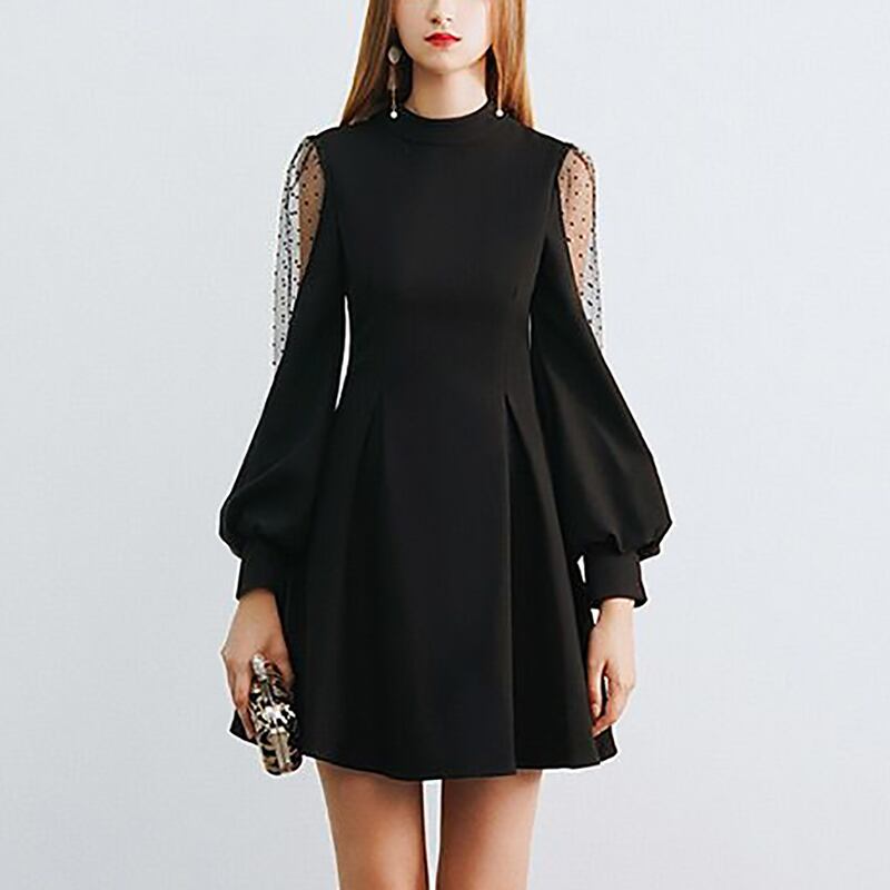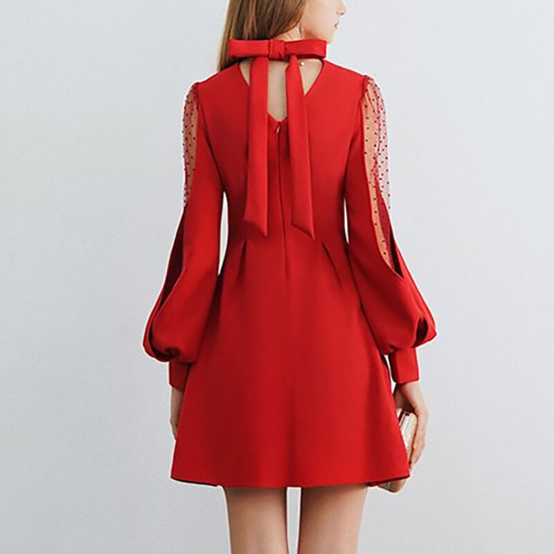 ワンピース レディース 送料無料 2色 ドットチュールワンピース シースルーワンピース パーティードレス ミニワンピース フレアワンピース 長袖 ハイウエスト ランタンスリーブ おしゃれ ロマンチック ガーリー キュート かわいい こなれ感 スタイル 小顔見せ 着痩せ 体形カバー インスタ トレンド きれいめ エレガント ギャザー シャーリング フレア レース シースルー 透け感 大人かわいい 上品 レッド ブラック 結婚式 お呼ばれ 二次会 パーティー フォーマル イベント ドレス カジュアルドレス