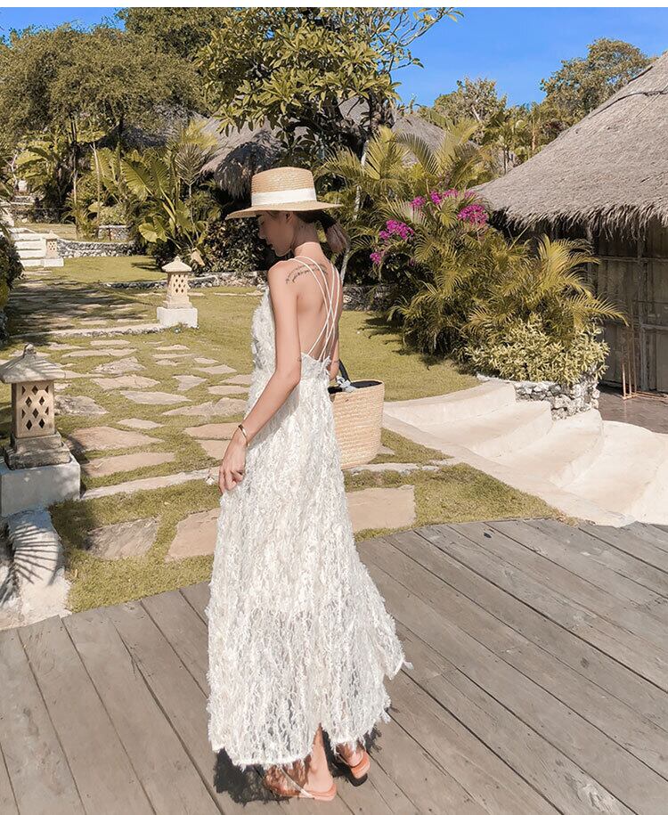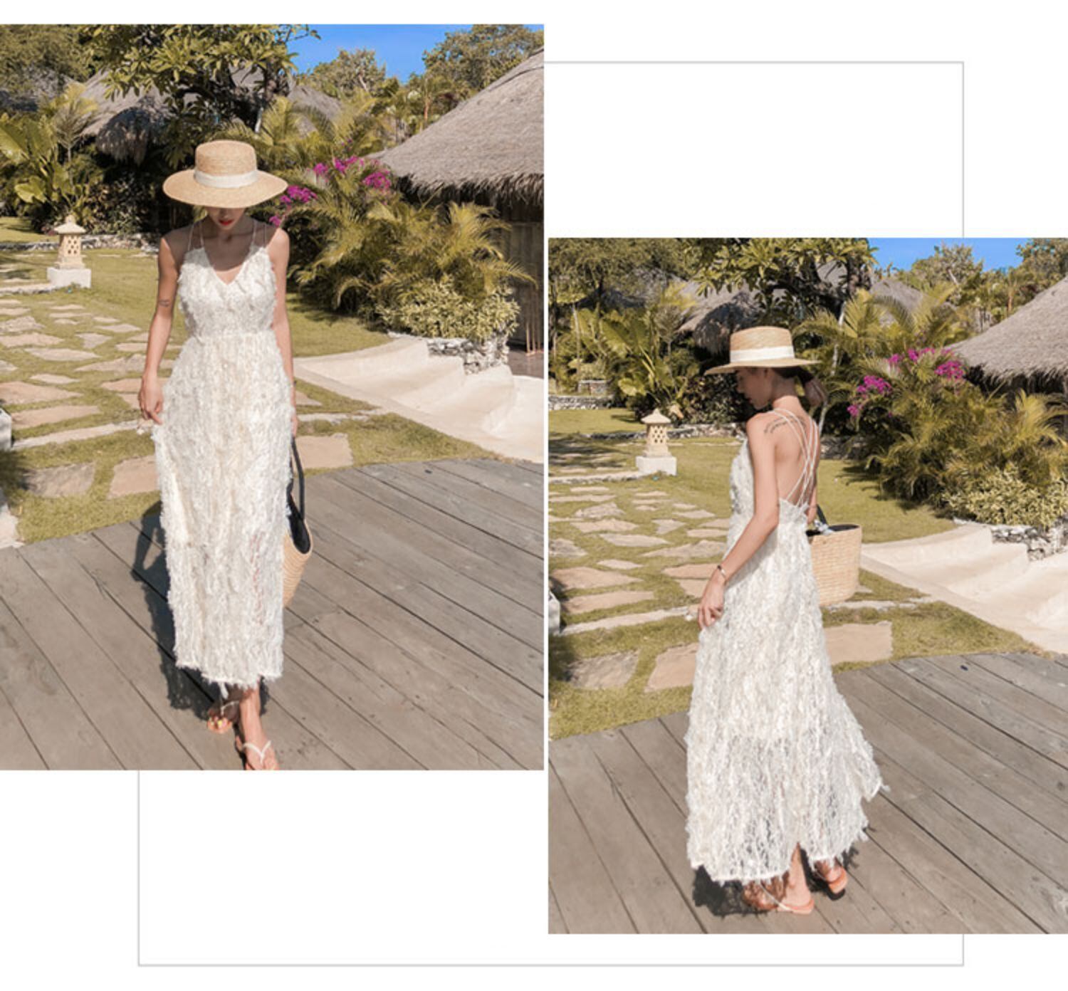 シックな大人の抜け感を演出するバックコンシャスなキャミワンピース。