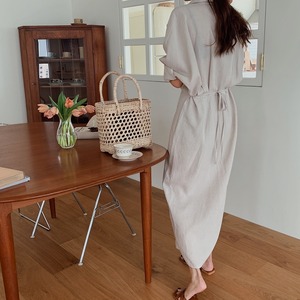 ドルマンスリーブがフェミニンなシャツワンピース。
