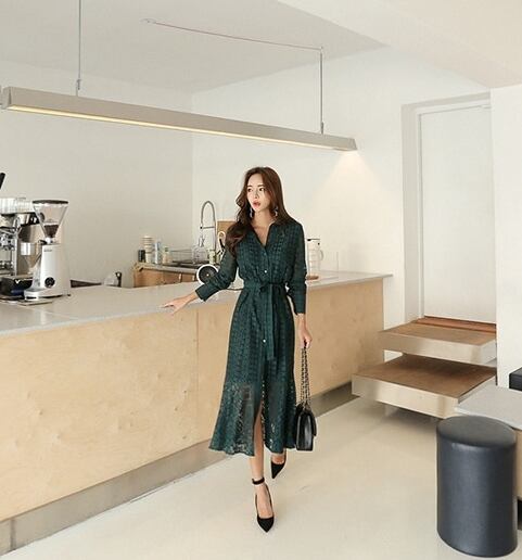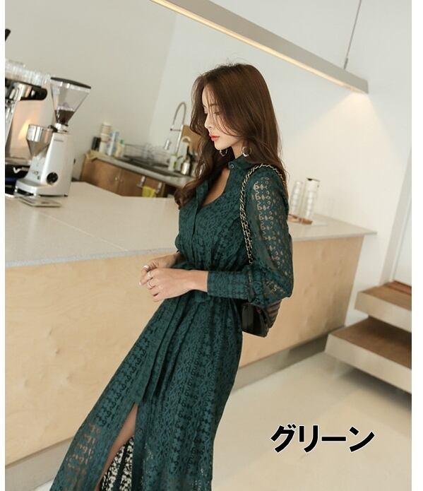 小花柄の総レースが可愛いミディ丈ワンピース。