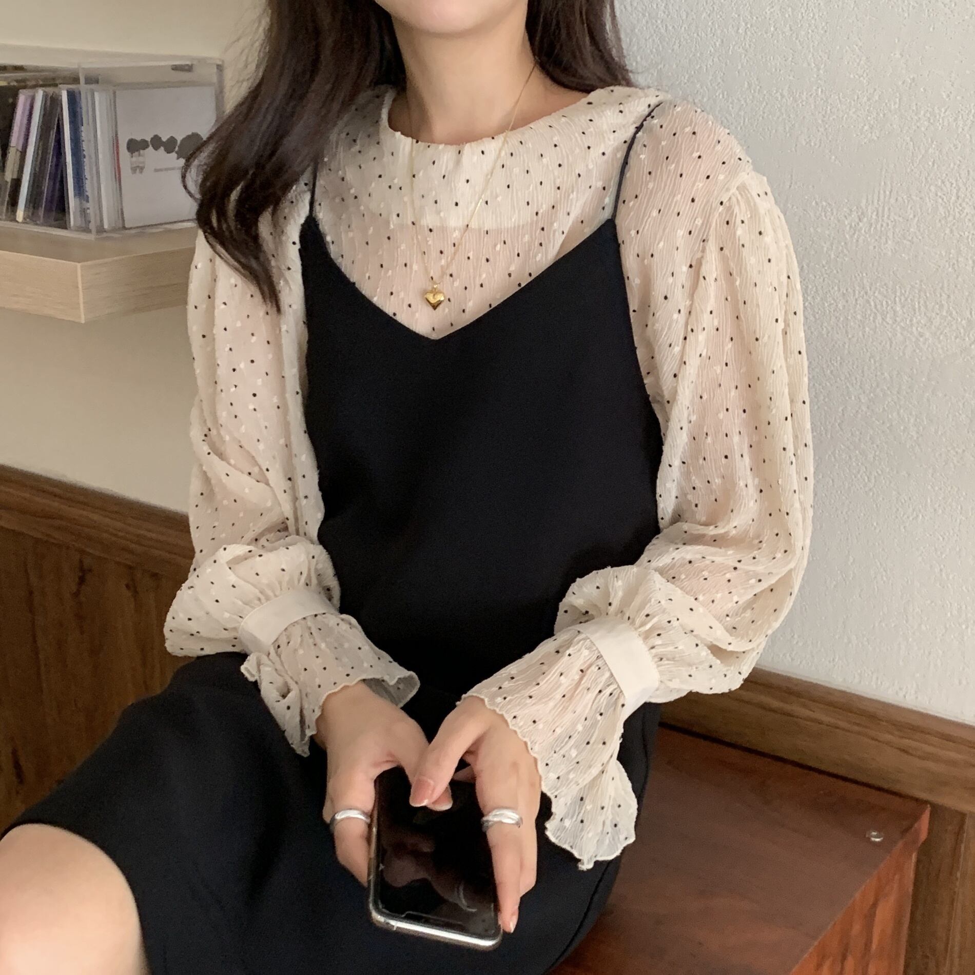 ブラウス トップス 袖あり 長袖 ボリューム袖 ラウンドネック シフォン 透け感 シースルー かわいい 大人可愛い きれいめ 大人 上品 おしゃれ お洒落 大人可愛い 大人女子 ラブリー キュート ガーリー エレガント 白 ホワイト 黒 ブラック 春 夏 秋 10代 20代 30代 40代 レディース ビジネス OL 通勤 学生 通学 デート お出かけ 休日 着回し 重ね着 韓国 韓国系 オルチャン ファッション コーデ スタイル モテ トレンド 流行