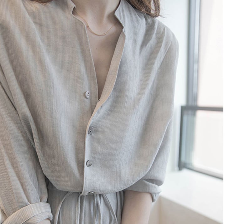 ドルマンスリーブがフェミニンなシャツワンピース。