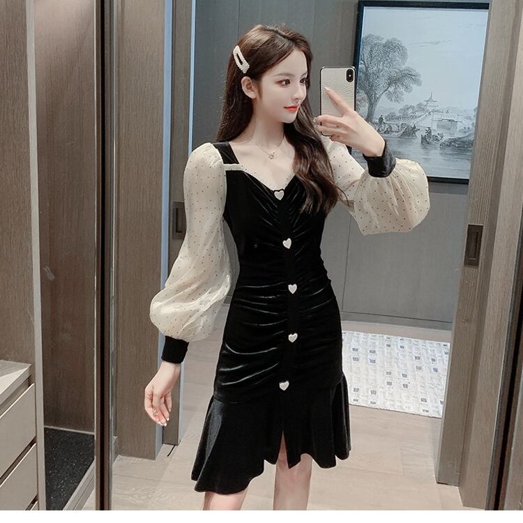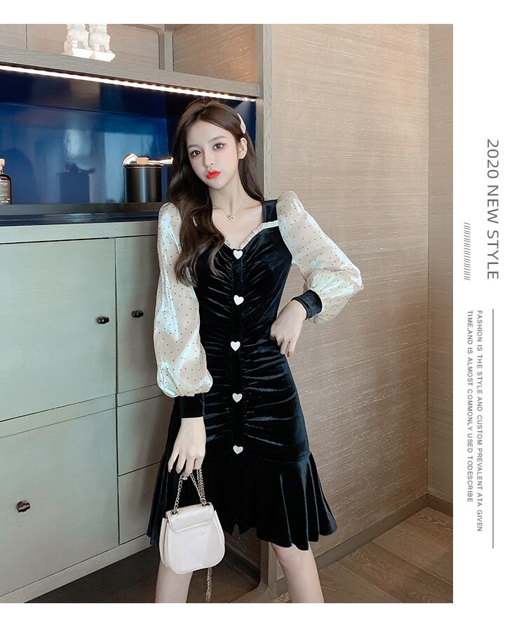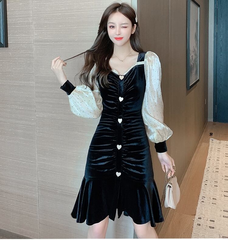 ベルベットのシャーリングでボディラインが綺麗に出るワンピース。