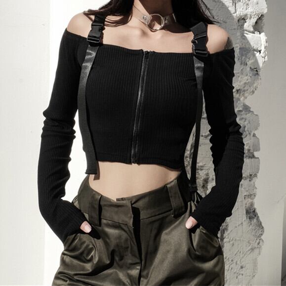 トップス レディース 送料無料 長袖 Tシャツ クロップドトップス ガーター ベルト オフショルダー リブ ショート丈 タイト フィット ボディコン クルーネック 半袖 クルーネック ホワイト 白色 ブラック 黒色 大人可愛い カジュアル セクシー 肌見せ 露出 おしゃれ お洒落 こなれ感 抜け感 ラブリー キュート ガーリー 涼し S M L XL 2XL 無地 春服 夏服 秋服 10代 20代 デート おでかけ 普段使い 着回し 重ね着 韓国 オルチャン ファッション コーデ スタイル 2021