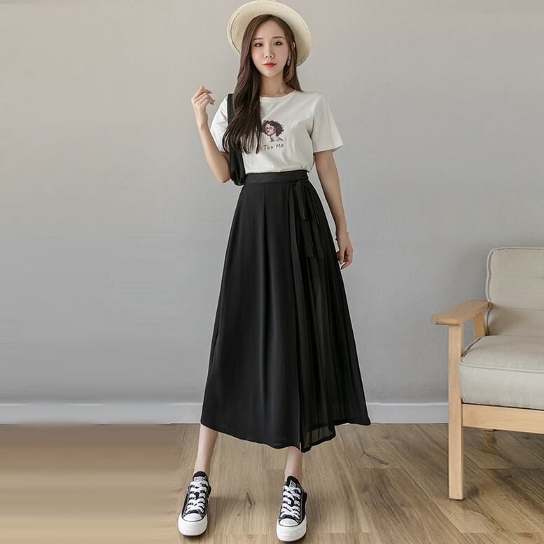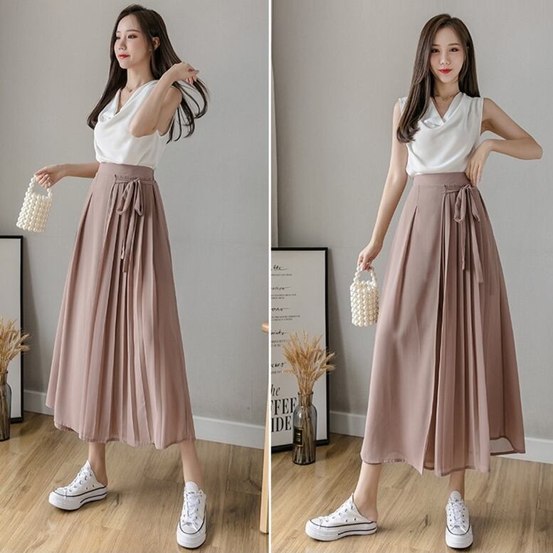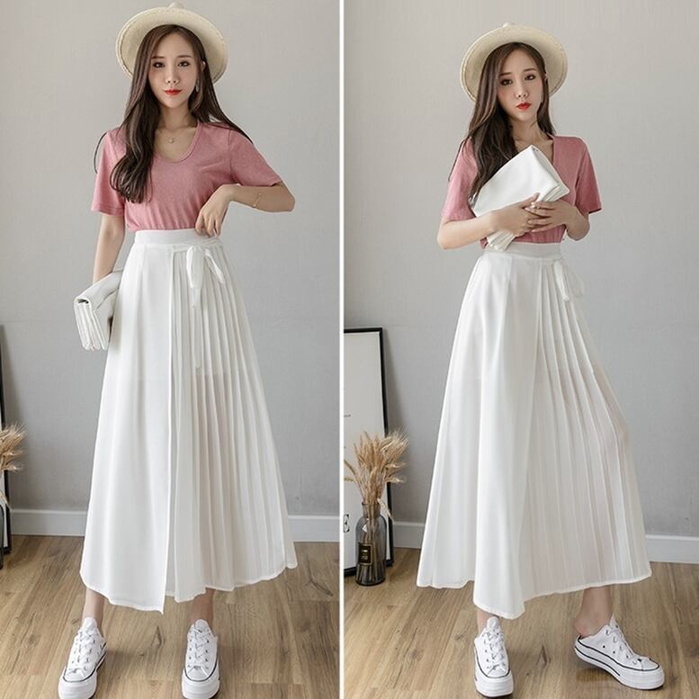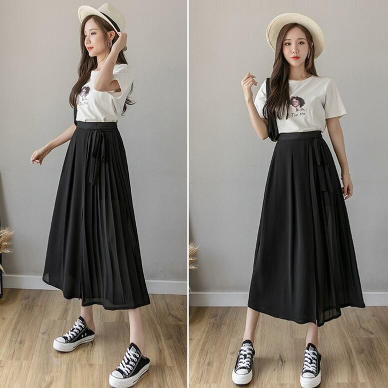 一味違うデザインで魅せるさらさらシフォンのワイドパンツ