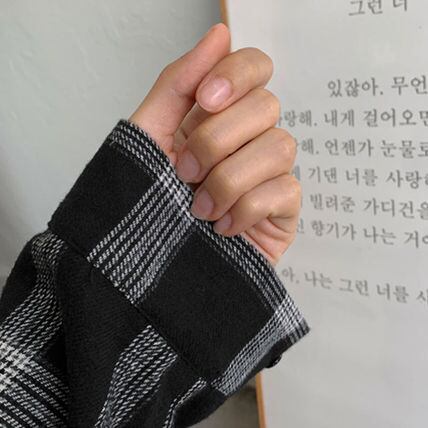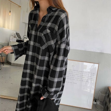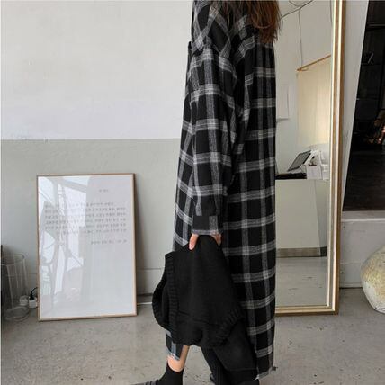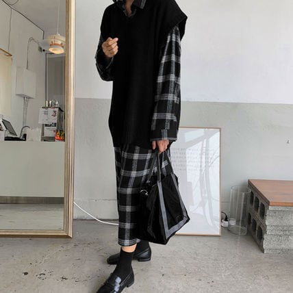 チェックとスリット入り裾でマニッシュで抜け感のあるスタイルに。