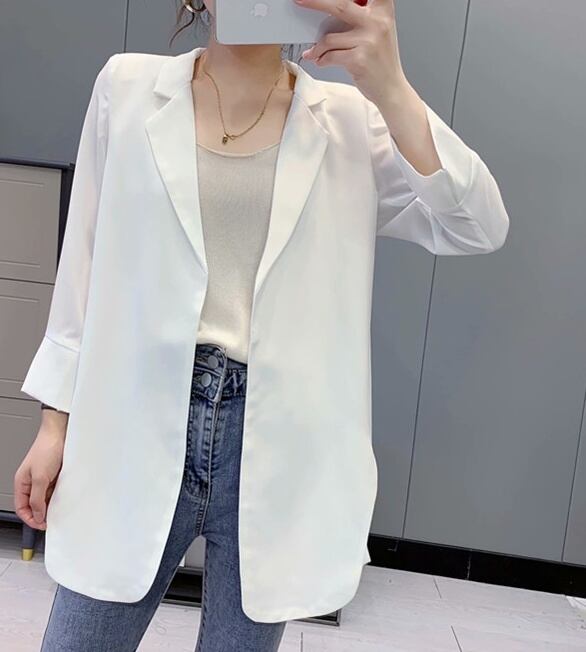 サマージャケット カラー 多数 ジャケット 七分袖 トップス 袖あり 長袖 襟付き スリム タイト 細身 白 ホワイト 黒 ブラック 青 ブルー 水色 きれいめ シンプル 大人 上品 おしゃれ お洒落 かっこいい 大人可愛い 大人女子 こなれ感 メンズライク クール エレガント モダン 春 夏 秋 入学式 入園式 卒業式 卒園式 20代 30代 40代 50代 レディース オフィス ビジネス OL 通勤 学生 通学 デート 着回し 普段使い 重ね着 韓国系 オルチャン ファッション コーデ トレンド 流行