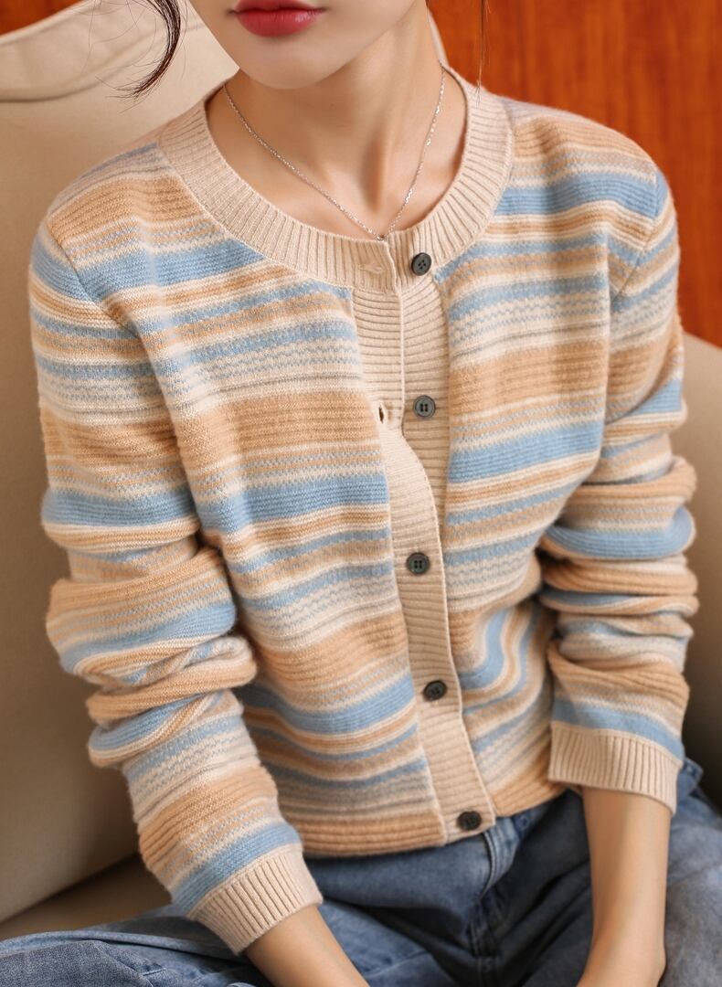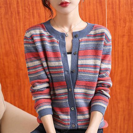レトロな雰囲気のマルチボーダーのカーディガン。