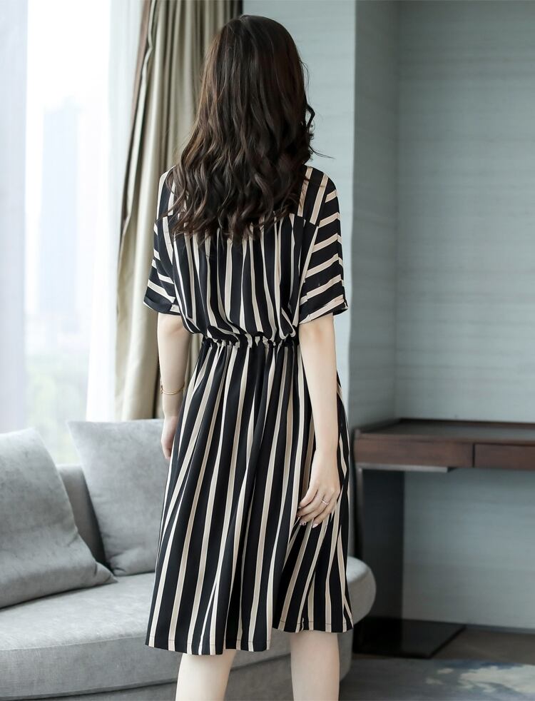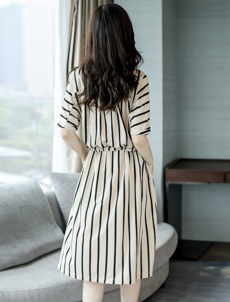 ワンピース レディース 送料無料 フレアワンピース 立ち襟 スタンドカラー クルーネック ファスナー 五分袖 5分袖 ハイウエスト ウエストマーク 体型カバー 脚長 細見え スタイルアップ ミディ丈 ミディアム丈 ブラック ホワイト ストライプ柄 縞模様 バイカラー フェミニン きれいめ 上品 エレガント 大人女子 大人可愛い おしゃれ お洒落 シック モダン スタイリッシュ ファッショナブル かわいい カジュアル ガーリー キュート 春服 秋服 おでかけ デート 普段使い 重ね着 着回し 20代 30代