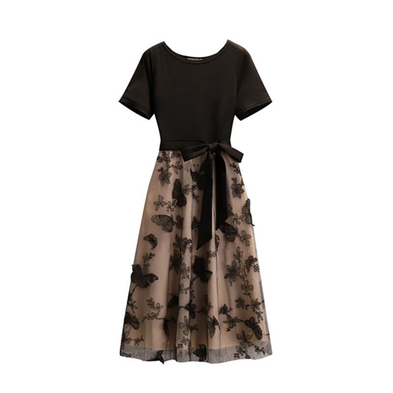 ワンピース レディース 送料無料 チュールワンピース フレアワンピース 半袖 ハイウエスト ミドル丈 バタフライ 蝶 フラワー 花 レース 大きいサイズ プラスサイズ おしゃれ ロマンチック ガーリー キュートリボン かわいい スタイル 小顔見せ 着痩せ 体形カバー OL オフィス 通勤 インスタ トレンド きれいめ エレガント ギャザー シャーリング フレア レース シースルー 透け感 大人かわいい 上品 ブラック 結婚式 お呼ばれ 二次会 パーティー フォーマル イベント カジュアルドレス