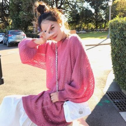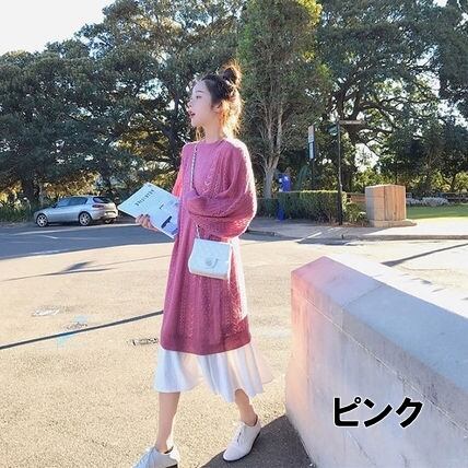 透かし編みニットとキャミソールワンピのレイヤードアイテム。。