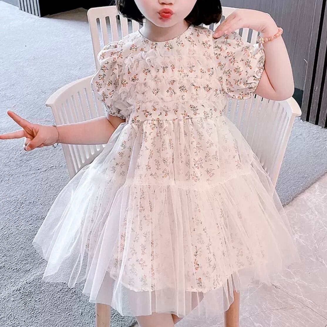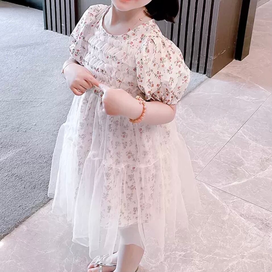 子供服 80〜130 半袖 パフスリーブ フレアワンピース 花柄 シースルー レース 送料無料 チュールスカート ミディ丈 子供 キッズコーデ キッズファッション キッズドレス キッズ 可愛い きれいめ エレガント 春 夏 ガーリー 韓国系 お出かけ 外出 きれいめカジュアル 着回し ファッション デート コーディネート 重ね着 休日 特別な日 お祝い 記念日 カジュアル 普段着 春コーデ 夏コーデ おしゃれ シンプル ゆったり 韓国ファッション ワンポイント コーデ パーティー パーティドレス 誕生日