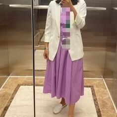 フレアスカ―との上品なボリュームでフェミニンな装いに。